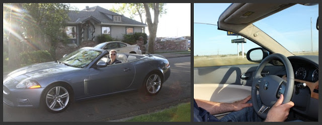 | To celebrate, Daniel picked me up in a Jaguar covertable. Pure luxury! |